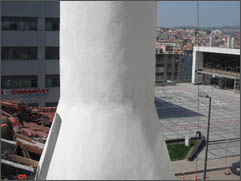 | Betonarme kolonların sargılama ile çarpma gerilmelerine karşı güçlendirilmesinde ve basıç dayanımlarının artırılmasında, kirişlerin eğilmeye ve kesmeye karşı güçlendirilmesinde, sehimlerinin azaltılmasında kullanılan karbonfiber elyaf uygulamaları. |